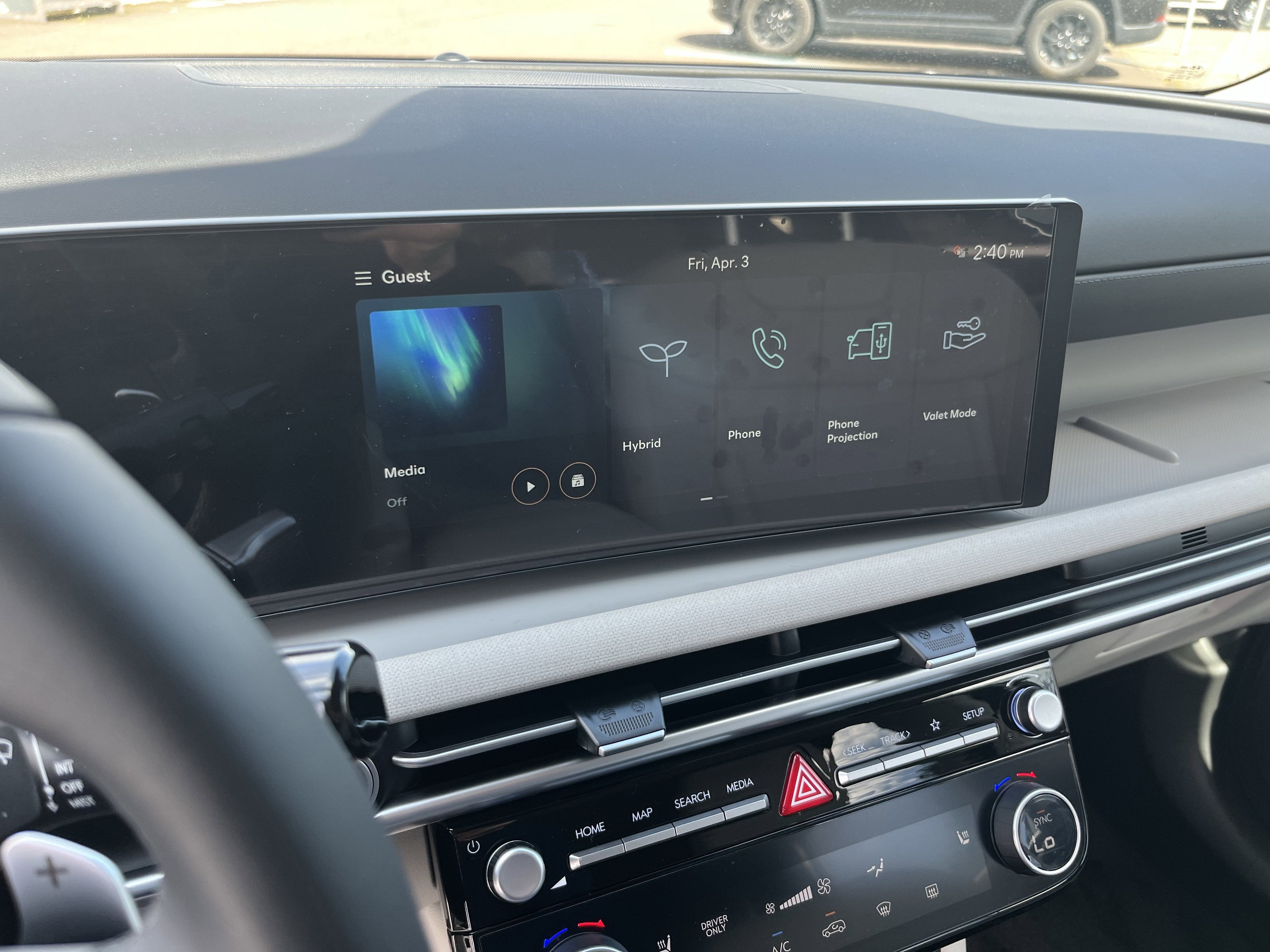 - Radio: AM/FM/HD Audio System -inc: 12.3" color touchscreen display, 6 speakers, SiriusXM satellite radio system (3-month trial subscription), wireless Apple CarPlay and Android Auto integration, controller OTA update capability, Blue Link connected car system and USB connectivity
