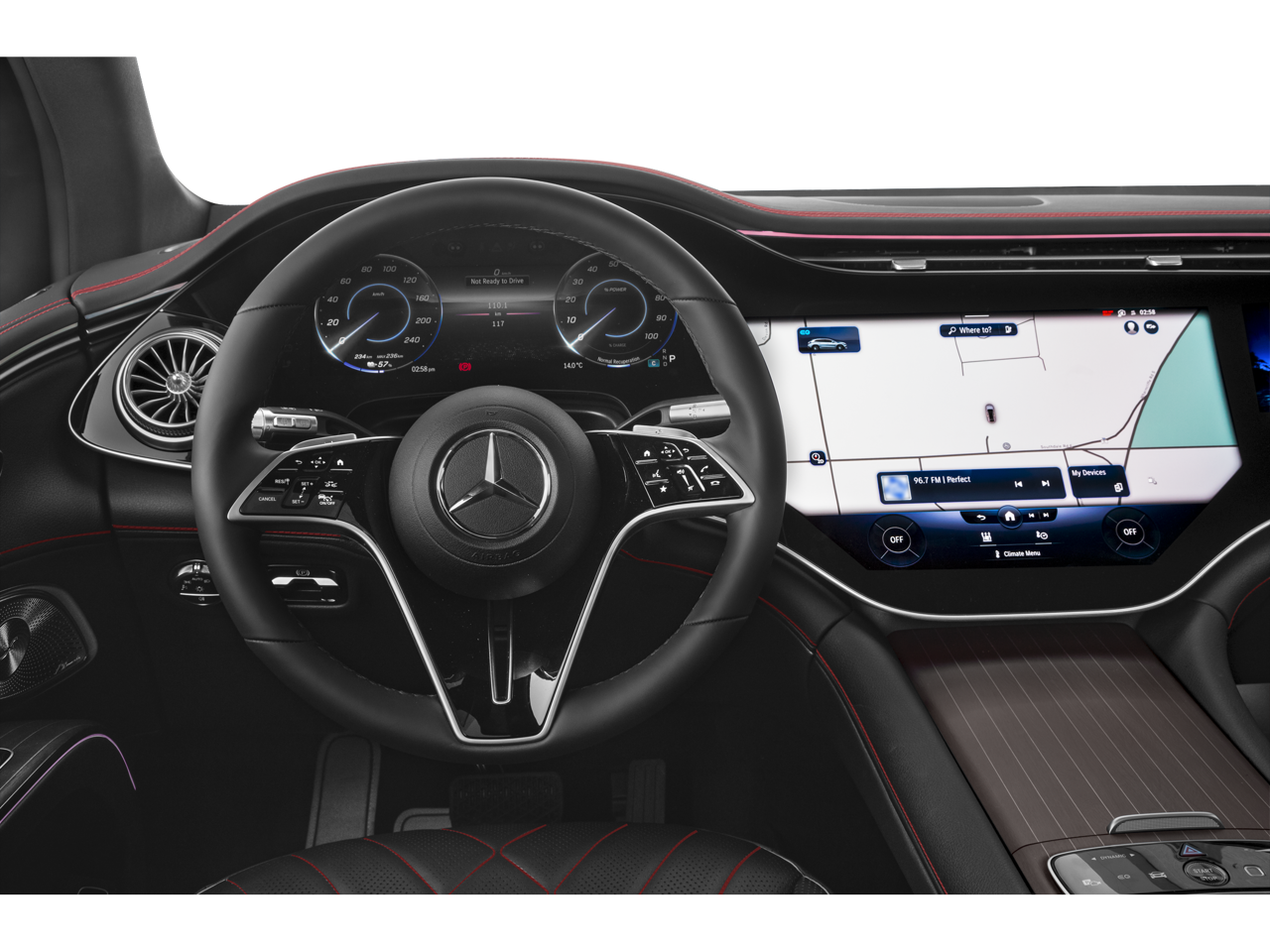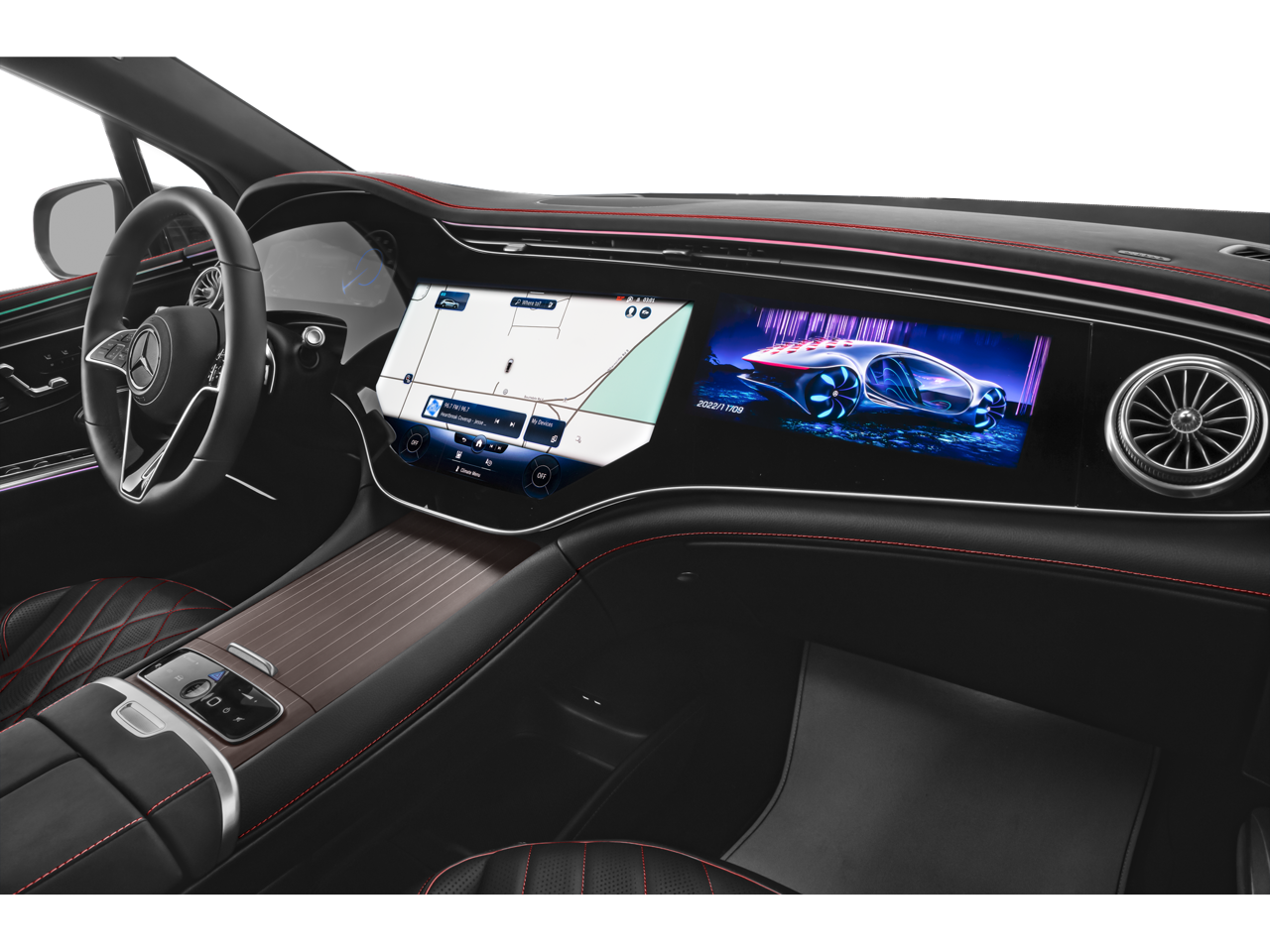 - Radio: Burmester 3D Surround Sound System -inc: Dolby Atmos, EQ sound experience and sound personalization, MBUX hyperscreen w/17.7" OLED central display and 12.3" OLED passenger display, SiriusXM satellite radio w/trial period, MBUX augmented reality for navigation, fingerprint scanner for MBUX profile authentication and wireless smartphone integration (Apple CarPlay and Android Auto)