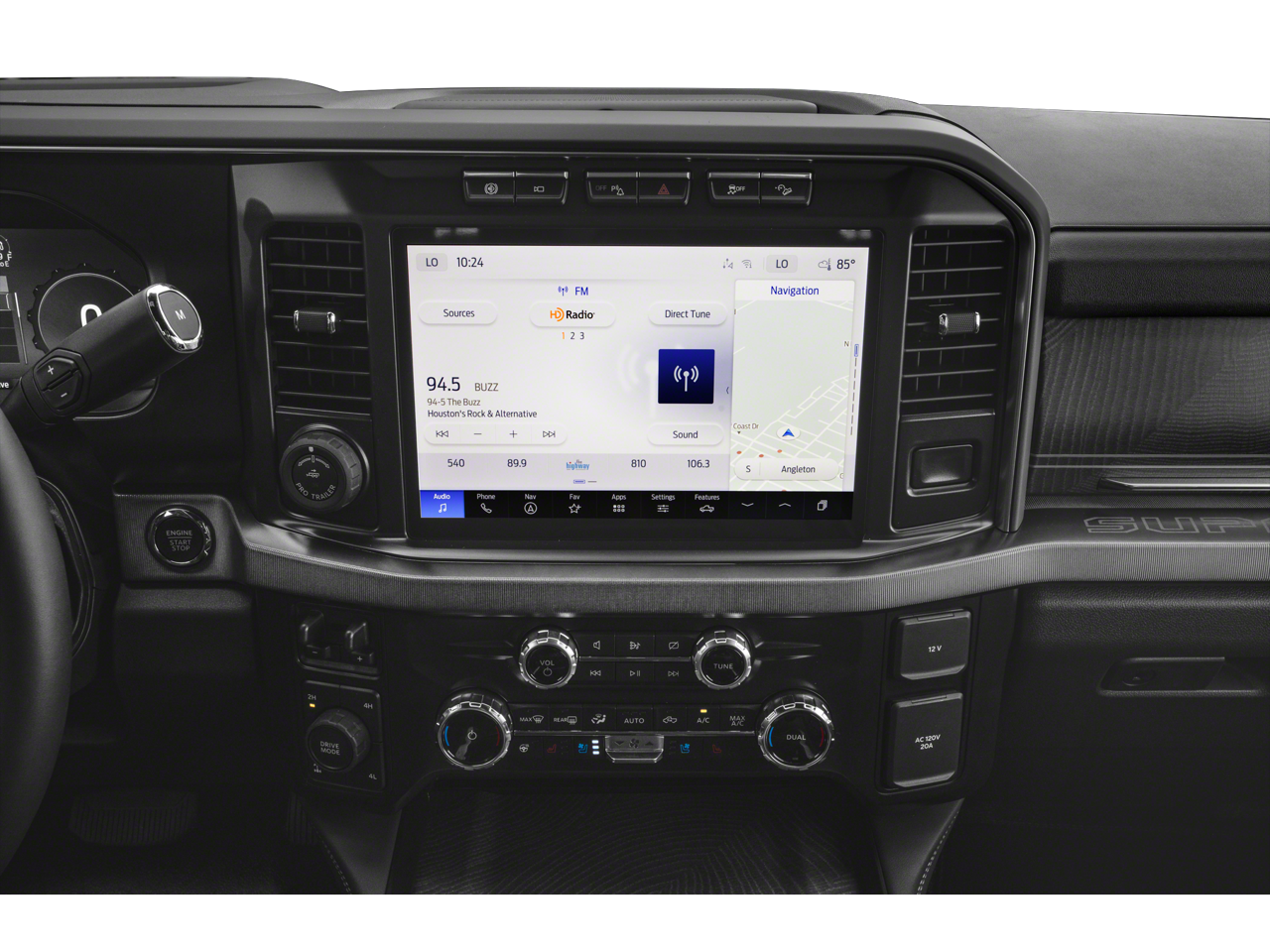 - SYNC 4 w/Enhanced Voice Recognition -inc: 12" LCD capacitive touchscreen w/swipe capability, information on demand panel, wireless phone connection, cloud connected, AppLink w/app catalog, 911 Assist, Apple CarPlay and Android Auto compatibility, digital owner's manual, conversational voice command recognition and connected navigation w/complimentary 1-year trial for eligible vehicles that begins on the new vehicle warranty start date, Customers must unlock the navigation service trial by activating the eligible vehicle w/a FordPass member account, If not subscribed by the end of the complimentary period, the connected navigation service will terminate, and the system will revert to embedded offline navigation, Navigation services require SYNC4 and Ford Pass Connect (optional on select vehicles), complimentary connect service and the FordPass app (see FordPass terms for details), Connected service and features depend on compatible AT&T network availability, Evolving technology/cellular networks/vehicle capability may limit functionality and prevent operation of connected features, FordPass app, compatible w/select smartphone platforms, is available via a download, Message and data rates may apply