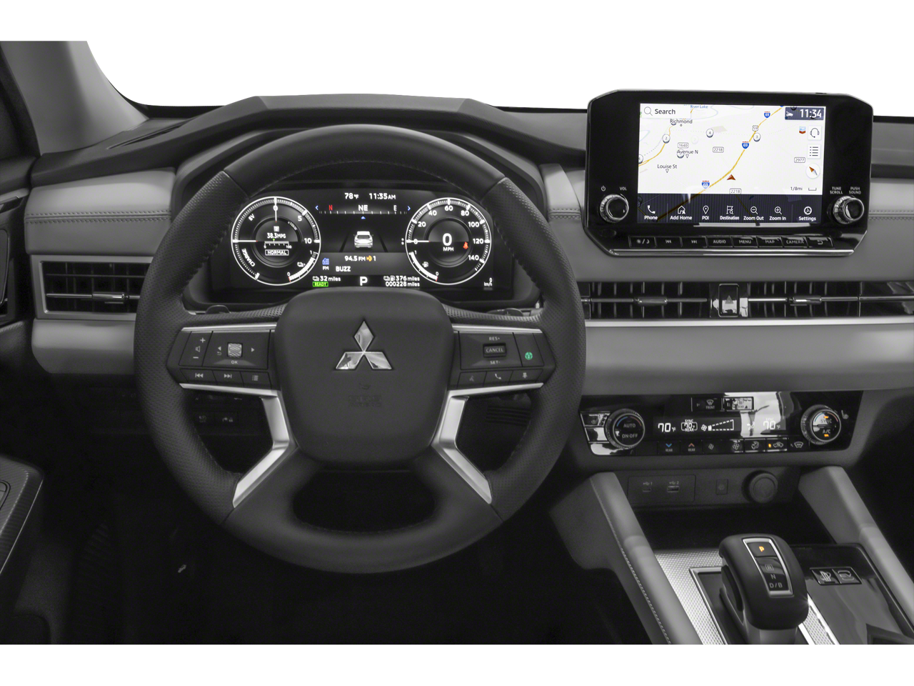 - Radio: AM/FM 9" Smartphone Link Display Audio -inc: navigation system, Apple CarPlay and Android Auto, SiriusXM satellite radio w/90 day SXM All Access and SXM Traffic and Travel Link subscription, HD Radio, Mitsubishi Connect w/safeguard and remote services and 24 month free trial (mobile app enrollment required), steering wheel audio and phone controls w/voice recognition, front USB-C and USB-A port, 6 speakers and Bluetooth® wireless technology